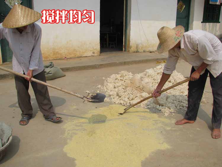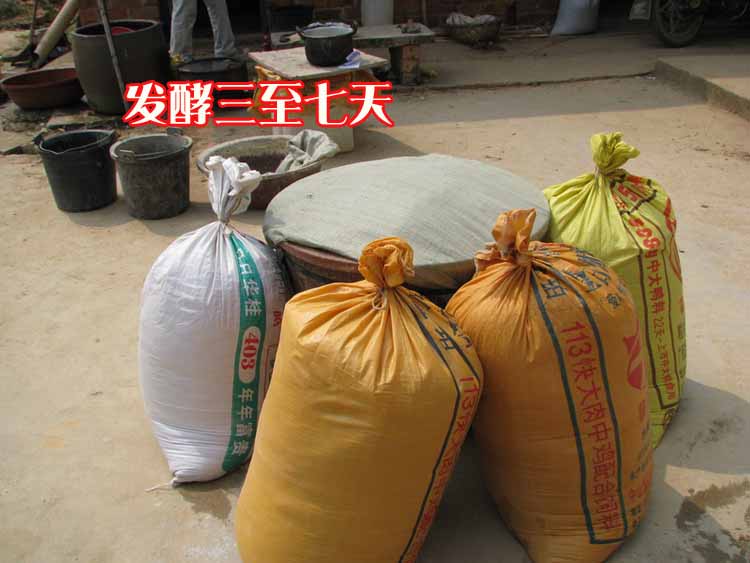 5.另外,發(fā)酵的大宗原料的配料配方完全可以由用戶自己根據(jù)當?shù)氐脑阍Y源情況,自己設(shè)計發(fā)酵的配方,不一定要按照我們資料上所介紹的發(fā)酵配方,非常刻板地照上面的來操作,發(fā)酵劑這個產(chǎn)品其實可以隨意設(shè)計你的發(fā)酵配料,例如,當?shù)赜衅?a style="color: rgb(51, 51, 51); text-decoration: underline; word-wrap: break-word; transition: color 0.2s ease-in-out;" target="_blank">酒糟,又有豆渣,就可以把這兩種原料一起來發(fā)酵,只是注意幾點: 一是配方中要有微生物啟動發(fā)酵需要的少量能量飼料如玉米粉,1~10%都可以,越是臟臭的糟渣用量就多一些,比較好的糟渣如豆渣和啤酒糟,就少用一些;二是注意加點發(fā)酵活化的元素,如磷酸氫鈣,加量為0.2%左右;三是發(fā)酵注意密封好;四是加水量要在60%左右最好,以手捏成團,有水從手指間滴出為度。四是發(fā)酵后,根據(jù)發(fā)酵配料的粗蛋白質(zhì)和能量情況,進行配料喂豬,當然,喂養(yǎng)時的飼料配方就需要你熟悉各種飼料原料的營養(yǎng)含量,動物配方設(shè)計的基本知識等,設(shè)計配方方面可以咨詢服務(wù)部和廠家,或在網(wǎng)站上的論壇和留言本上咨詢,網(wǎng)址是www.syc163.com。