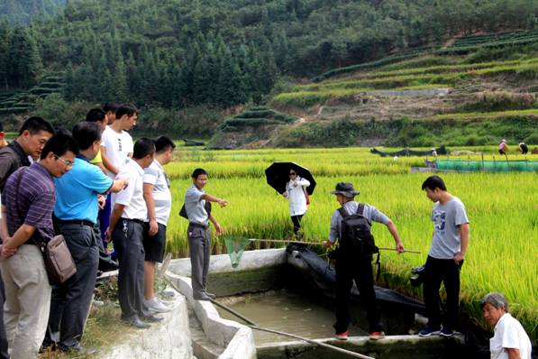 推廣稻田生態(tài)種養(yǎng)模式 實(shí)現(xiàn)魚糧增收促脫貧 10月18日,全區(qū)稻田綜合種養(yǎng)培訓(xùn)班在三江縣舉辦,來自全區(qū)13個(gè)市、47個(gè)縣(區(qū))水產(chǎn)畜牧獸醫(yī)局(農(nóng)委)的分管領(lǐng)導(dǎo)、從事稻田養(yǎng)殖的企業(yè)代表、三江縣15個(gè)鄉(xiāng)鎮(zhèn)的主要領(lǐng)導(dǎo)和分管領(lǐng)導(dǎo)、以及三江縣水產(chǎn)畜牧獸醫(yī)局系統(tǒng)人員、三江縣布代村扶貧點(diǎn)的村兩委及貧困戶代表共209人參加此次培訓(xùn)班。培訓(xùn)班采用現(xiàn)場(chǎng)實(shí)地參觀和講解、課堂經(jīng)驗(yàn)交流及專家授課等教學(xué)形式,使參訓(xùn)學(xué)員見識(shí)了稻田綜合種養(yǎng)的“三江模式”,學(xué)習(xí)如何借鑒三江經(jīng)驗(yàn)因地制宜地開展稻田綜合種養(yǎng),實(shí)現(xiàn)糧食和稻魚的雙豐收,引領(lǐng)農(nóng)民脫貧致富奔小康。 稻田綜合種養(yǎng)的“三江模式” 三江縣侗族人民自古就有稻田養(yǎng)魚的傳統(tǒng),為了構(gòu)建種稻養(yǎng)魚這一特色產(chǎn)業(yè),引領(lǐng)侗鄉(xiāng)人民脫貧增收,2014年以來,依托農(nóng)業(yè)和水產(chǎn)養(yǎng)殖專家的技術(shù)指導(dǎo),三江縣政府整合投入資金3000多萬(wàn)元,對(duì)傳統(tǒng)的稻田養(yǎng)魚模式進(jìn)行技術(shù)升級(jí)改造,大力推廣種稻養(yǎng)魚的“三增技術(shù)”。一是“增水”:硬化加高田基,使其高出田土表層40厘米以上,以利于保水保肥和抗旱減災(zāi),同時(shí)在田間開挖魚坑、魚溝,使坑溝面積占田塊面積10%以上,增大稻田養(yǎng)殖水體,利于提高魚產(chǎn)量。二是“增種”:增加優(yōu)質(zhì)高效品種的種養(yǎng)。水稻品種主推再生力強(qiáng)、品質(zhì)好的野香優(yōu)3號(hào)和中浙優(yōu)1號(hào)。魚則主養(yǎng)本地鯉魚、雜交鯉、建鯉等品種,每畝放養(yǎng)1.5寸長(zhǎng)的鯉魚種300尾,3寸長(zhǎng)草魚種20尾,養(yǎng)魚全程實(shí)行“輪捕輪放、捕大留小”,形成了夏季稻田養(yǎng)魚與冬閑田養(yǎng)魚的循環(huán)連作,達(dá)到“一水兩用、一田多收”的效果。三是“增餌”:增加農(nóng)家肥料和農(nóng)家餌料,確保水稻和魚類有充足的肥料、餌料來源,獲得增產(chǎn)增收。2015年,全縣“稻田魚”總產(chǎn)量2480噸,平均畝產(chǎn)鮮魚33公斤,高的超過100公斤/畝。其中“坑溝式”“稻+魚”模式平均畝產(chǎn)鮮魚54.26公斤,每畝養(yǎng)魚增加純收入1820元。頭季稻谷平均畝產(chǎn)481公斤,增產(chǎn)稻谷5%左右,再生稻平均畝產(chǎn)200公斤,增收1200元,兩項(xiàng)共計(jì)增收3020元/畝。 自治區(qū)水產(chǎn)科學(xué)研究院在三江縣種稻養(yǎng)魚的實(shí)踐和數(shù)據(jù)也表明,稻田綜合種養(yǎng)模式是促進(jìn)農(nóng)民增糧增魚增收的有效手段,是在精準(zhǔn)扶貧中大有可為的產(chǎn)業(yè),達(dá)到“三減”效果。一是減少化肥農(nóng)藥的使用,打造“高山稻魚”和“高山魚稻”兩個(gè)綠色生態(tài)品牌,產(chǎn)品更加符合生態(tài)健康的要求。二是減少勞動(dòng)力,種稻養(yǎng)魚,稻谷為魚類提供氧氣、遮陰及有機(jī)物質(zhì),田間水稻害蟲成為魚的食物,魚糞成了水稻的肥料,魚類起到耘田除草、減少病蟲害和增肥的作用,可實(shí)現(xiàn)魚稻雙增。種田根本不需要耘田除草等環(huán)節(jié),對(duì)于目前農(nóng)村嚴(yán)重缺乏勞動(dòng)力的情況下具有重要意義。三是增設(shè)魚坑、漁溝減少種稻面積,糧食產(chǎn)量不減少反而增加。經(jīng)測(cè)算,三江程村鄉(xiāng)夏村屯示范點(diǎn)2015年稻魚平均每畝產(chǎn)量52.5公斤,按市場(chǎng)價(jià)40元/公斤計(jì)算,僅養(yǎng)魚一項(xiàng)農(nóng)戶每畝增收2100元,稻谷為畝產(chǎn)557公斤,平均每畝增產(chǎn)15%,市場(chǎng)價(jià)2.8元/公斤, 產(chǎn)值約1500元。2016年還蓄留了再生稻,按照當(dāng)前長(zhǎng)勢(shì),平均畝產(chǎn)250公斤,增收1200元,真正取得了“稻谷增產(chǎn)魚增收,農(nóng)業(yè)增效助脫貧”的良好成效,同時(shí)對(duì)于維護(hù)糧食安全具有重要意義。 種稻養(yǎng)魚,稻谷為魚類提供氧氣、遮陰及有機(jī)物質(zhì),田間水稻害蟲成為魚的食物,魚糞成了水稻的肥料,魚類起到耘田除草、減少病蟲害和增肥的作用,可實(shí)現(xiàn)魚稻雙增。 稻田綜合種養(yǎng)的現(xiàn)場(chǎng)調(diào)研 三江縣是自治區(qū)水產(chǎn)畜牧獸醫(yī)局的定點(diǎn)扶貧縣,為了做好精準(zhǔn)扶貧工作,自治區(qū)水產(chǎn)畜牧獸醫(yī)局領(lǐng)導(dǎo)多次帶領(lǐng)本局領(lǐng)導(dǎo)干部、產(chǎn)業(yè)扶貧專家組專家和第一書記們深入到三江縣的扶貧點(diǎn)開展實(shí)地調(diào)研,指導(dǎo)和幫助三江縣開展種稻養(yǎng)魚工作。10月16日至17日,為了做好全區(qū)稻田綜合種養(yǎng)培訓(xùn)班的前期調(diào)研和現(xiàn)場(chǎng)教學(xué)踩點(diǎn)工作,自治區(qū)水產(chǎn)畜牧獸醫(yī)局黨組書記梁雄、扶貧專家組專家陳玉深、張益峰,自治區(qū)水產(chǎn)畜牧獸醫(yī)技術(shù)培訓(xùn)中心主任朱光蘭以及先行抵達(dá)的部分企業(yè)代表等一行人,在三江縣水產(chǎn)畜牧獸醫(yī)局領(lǐng)導(dǎo)的陪同下來到程村鄉(xiāng)夏村屯種稻養(yǎng)魚示范基地開展現(xiàn)場(chǎng)調(diào)研。 自治區(qū)水產(chǎn)畜牧獸醫(yī)局黨組書記