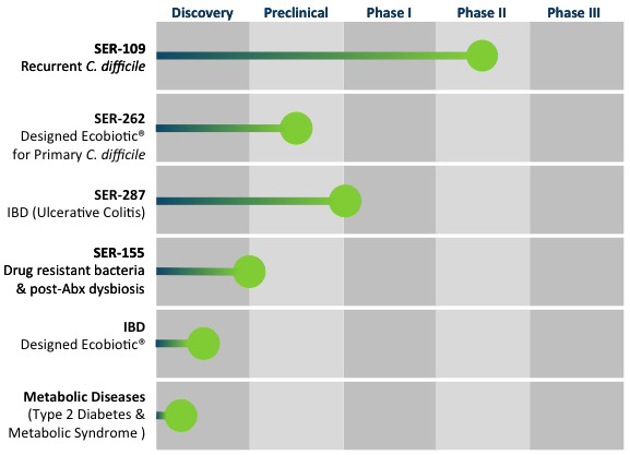 當(dāng)然,除了SER-109之外,Seres還有另外幾款藥物在研發(fā)中。其中有一款藥物用于治療2型糖尿病等代謝類疾病。