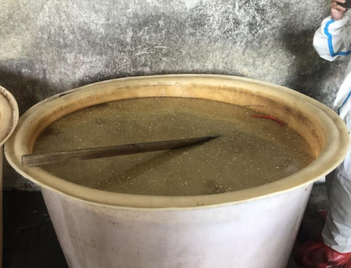 方法二:“御瘟湯”發(fā)酵成為中草藥菌水的飼喂方法,按1.5-2公斤“御瘟湯”+1包500克的“99多功能飼料發(fā)酵劑”+750克~1公斤“多糖性復合菌種營養(yǎng)基”(或1公斤紅糖+10公斤全價飼料)+100公斤清水混合在非金屬容器中簡單密封發(fā)酵72小時以上后使用(在半個月內(nèi)使用完效果更好,且要持續(xù)密封保存,否則時間一長可能變質(zhì)不能使用)。